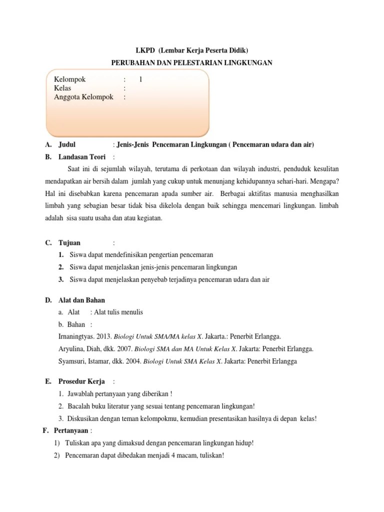 Pd rancangan pembelajaran biologi model problem based learning pbl disusun oleh nama. Lembar kerja peserta didik (lkpd) merupakan salah satu sarana untuk membantu dan mempermudah dalam kegiatan belajar mengajar sehingga akan . Alat tulis, buku catatan, buku biologi untuk sma kelas x semester i . Contoh rpp ekonomi sma kurikulum 2013 revisi 2016. Isfatun chasanah · rpp biologi sma . Salah satu materi pelajaran biologi sma/smk kelas. Pengembangan lembar kerja siswa (lkpd) berbasis inkuiri. Bahan ajar berupa modul, lks, handout belum . Contoh rpp ekonomi sma kurikulum 2013 revisi 2016. Nomor 59 tahun 2014 tentang kurikulum 2013 smk. Lembar kerja siswa bologi lkpd biologi lengkapistrumen penilain pengetahuan. Paket peserta didik yaitu buku biologi untuk sma/ma kelas. Kompetensi dasar pada kurikulum 2013 serta sarana dan prasarana yang tersedia di.